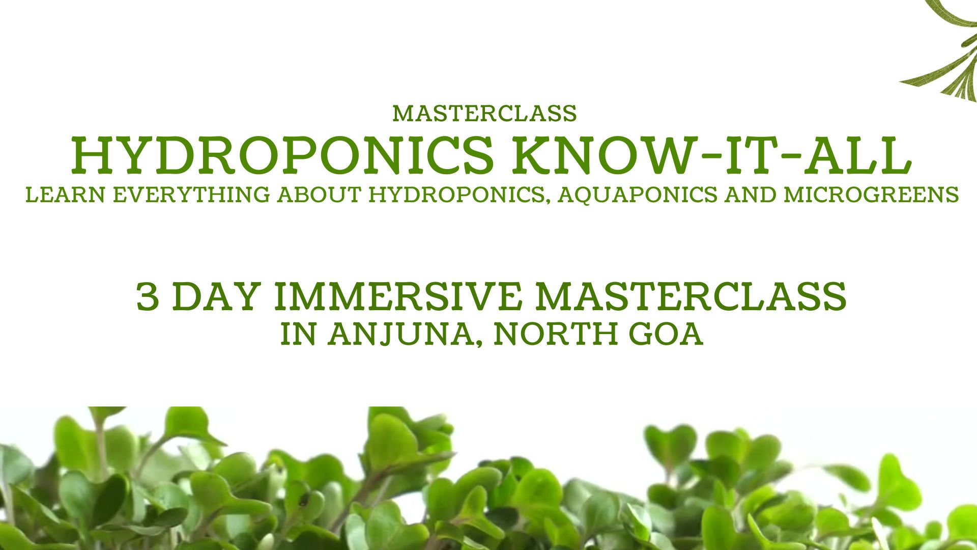 Welcome to 'The Hydroponics Know-It-All, Residential Masterclass' in Goa, where you will embark on a transformative journey into sustainable urban farming. This 3-day intensive program goes beyond theory, offering hands-on experience and onsite farm training. Understand the nuances of hydroponics and aquaponics, and learn to cultivate a variety of vegetables, fruits and microgreens sustainably. The practical farm training is integral to mastering these techniques, providing insights into sowing, monitoring, harvesting and more, ensuring you're equipped to apply your knowledge effectively.
